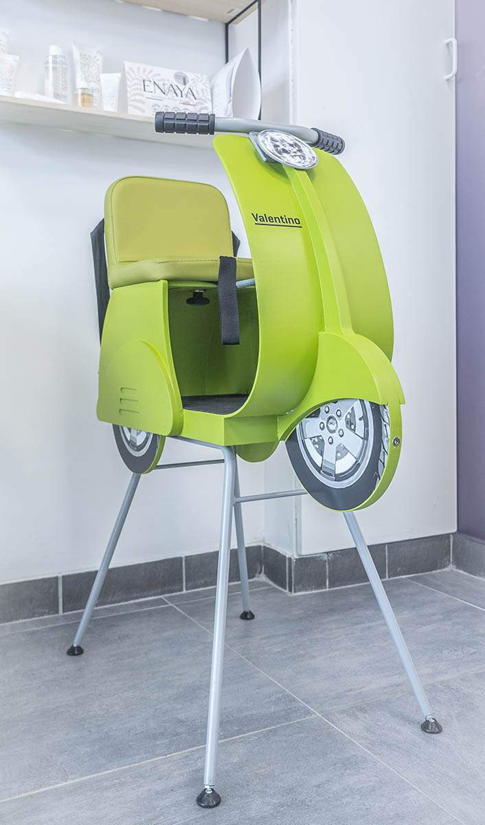 Mon salon de coiffure est équipé de sièges confortables et ajustables adaptés aux enfants, afin qu’ils se sentent parfaitement à l’aise pendant la coupe.